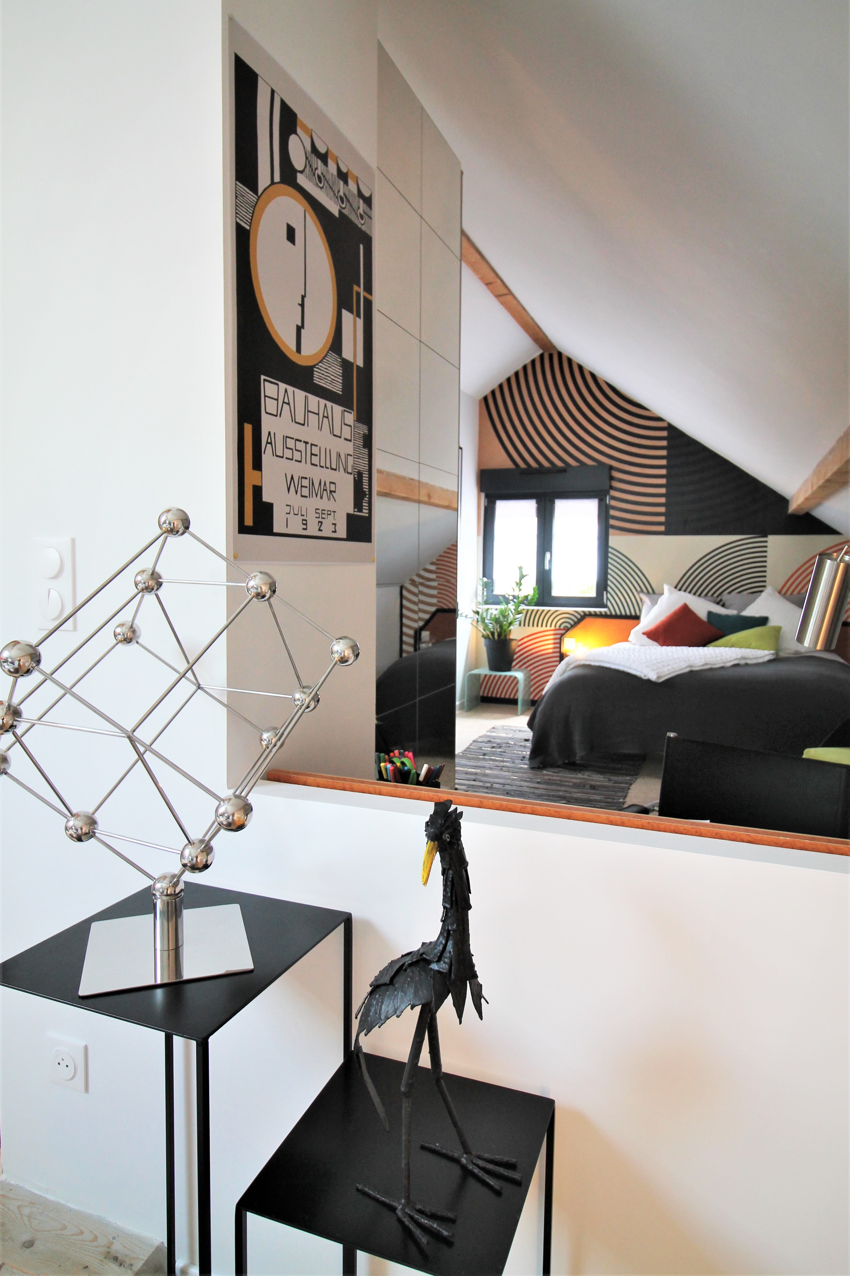 La décoration du lieu est empreinte de mouvements artistiques comme le Bauhaus, les années 50 et bien évidemment un clin d’œil à l’hôte de cette rue, le « crâ » ou corbeau, à découvrir dans ce nid…